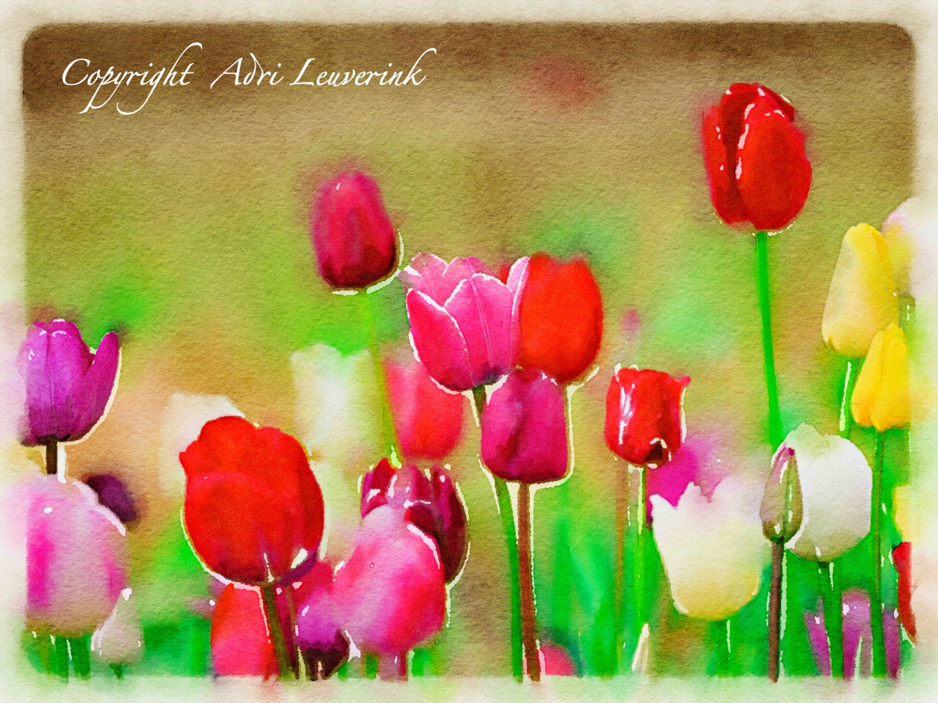 Dutch Tulips, onze Hollandse trots. Door Adri gefotografeerd en kunstzinnig bewerkt in prachtige EYECATCHERS vol met happy makende kleuren. Prachtige wanddecoraties voor in Uw interieur. Leverbaar als Artistpaneel, Artistpaneel, op glas, op planken, etc......