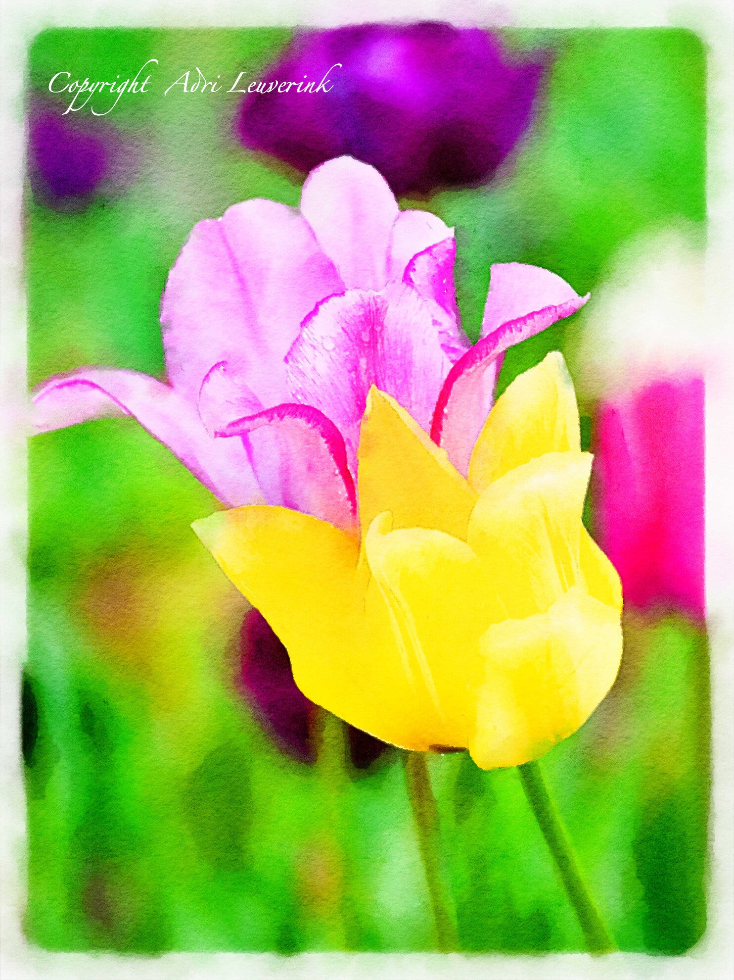 Dutch Tulips, onze Hollandse trots. Door Adri gefotografeerd en kunstzinnig bewerkt in prachtige EYECATCHERS vol met happy makende kleuren. Prachtige wanddecoraties voor in Uw interieur. Leverbaar als Artistpaneel, Artistpaneel, op glas, op planken, etc......