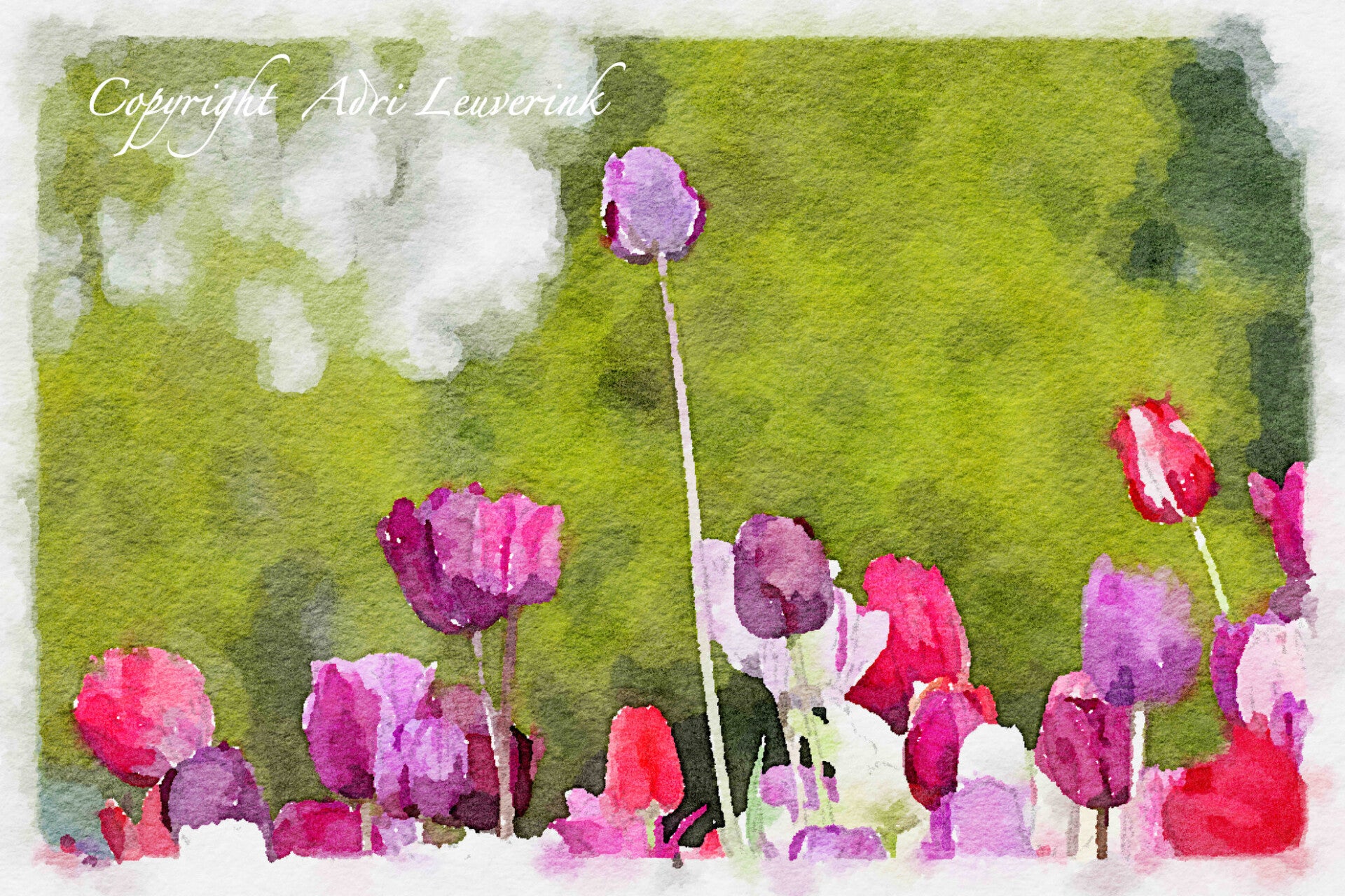 Dutch Tulips, onze Hollandse trots. Door Adri gefotografeerd en kunstzinnig bewerkt in prachtige EYECATCHERS vol met happy makende kleuren. Prachtige wanddecoraties voor in Uw interieur. Leverbaar als Artistpaneel, Artistpaneel, op glas, op planken, etc......