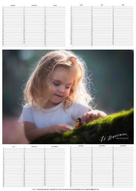 Deze All in 1 verjaardags kalender wordt gedrukt op Fine-art fotopapier. Gemonteerd op board incl. ophanging. Leverbaar in 2 formaten op 40x60 en 50x70.